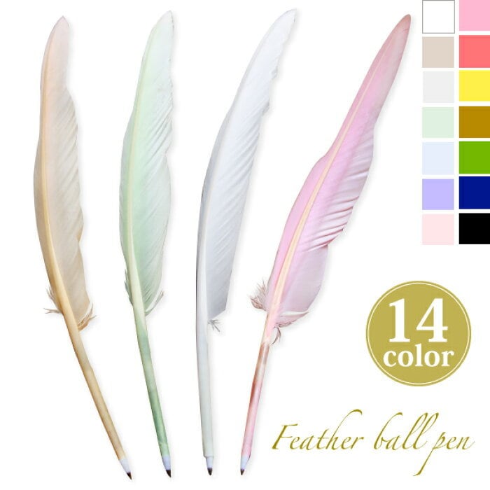選べる14色*フェザー ペン 羽ペン《インクカラー:ブラック》フェザーボールペン ボールペン 羽根ペン 天然素材 ステーショナリー カラーフェザーペン カラフル ペン 文房具 文具 フェザーボールペン フェザー 羽根 羽ペン ギフト 結婚式 ウエディング 記帳 ボールペン 黒インク 天然素材 ホワイト 白ペン プチギフト 送別