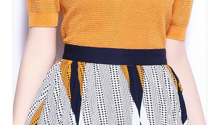送料無料◆D454 ハーフスリーブ サマーニット × ジオメトリック フレアスカート セットアップ《 オレンジ 》2点セット 上下セット 幾何学柄 幾何学 ジオメトリック柄 スカートセット スーツ ストライプ 半袖 インポート パーティードレス カジュアル 無地 柄 上下 ニット メール便 上下セット パーティーワンピ お呼ばれワンピース お食事 ひざ丈 おしゃれ 袖あり インポートワンピース ブラック ホワイト 柄スカート ウエストゴム オフィスカジュアル 2点セット《内田敦子アナご着用》