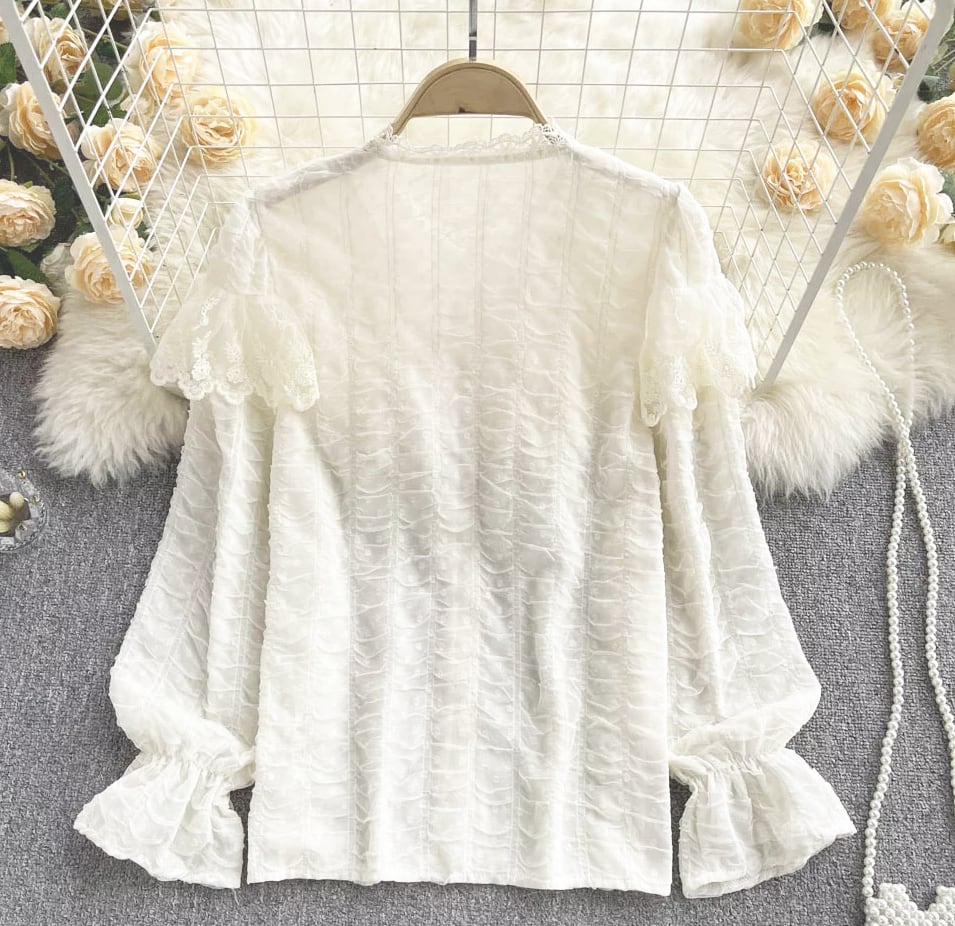 送料無料 ◆D662 パール ゴールド クラシカル ボタン レース キャンディースリーブ ドレスシャツ ブラウス 《 ホワイト・アイボリー 》白ブラウス 白シャツ アイボリーブラウス クリームブラウス シャツ 白シャツ レースブラウスフリルブラウス ロングスリーブ 袖あり 無地 パワースリーブ ラッフル シャツ フォーマル 白シャツ セミフォーマル トップス 前開き 前ボタン フリル袖 インポート パーティードレス カジュアル メール便 衣装 フレアスリーブ カジュアル モード おしゃれ お出かけ