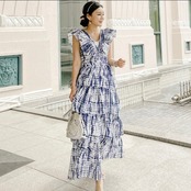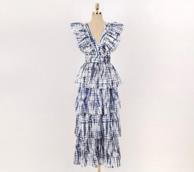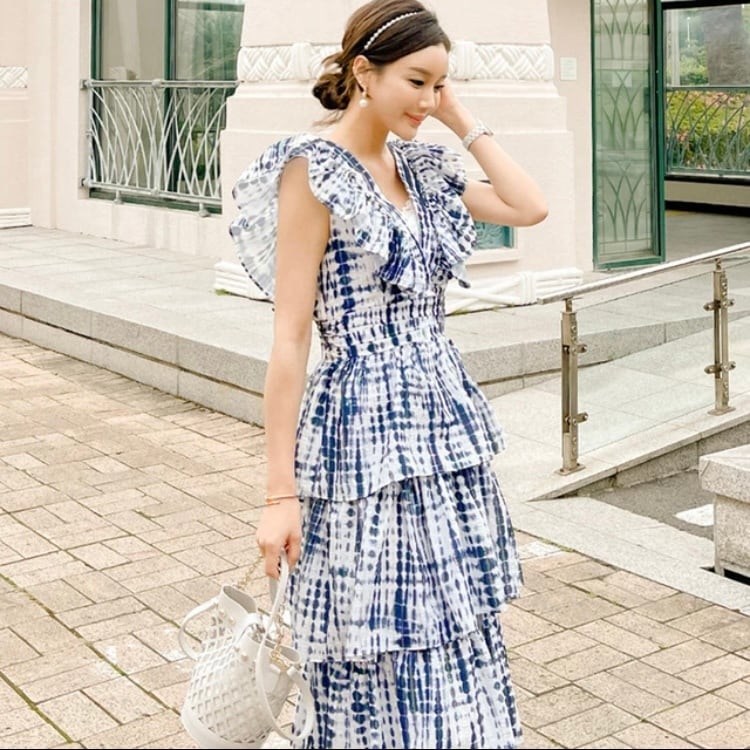 送料無料 ◆ D998 バックタッセルリボン Vネック ティアード ラッフルスリーブ オーロラ ストライプ ワンピース《 ホワイト×ブルー》白 青 フレンチスリーブ ノースリーブワンピース タイダイ 袖あり 水玉 ブルーワンピ ブルーワンピース インポートワンピース パーティードレス 衣装 メール便 パーティーワンピ 袖付き お呼ばれワンピース お食事 おしゃれ 光沢 インポートワンピース サンドレス 旅行 お出かけ ノースリーブ マキシ パーティー リゾート バカンス《工藤美桜さんご着用》