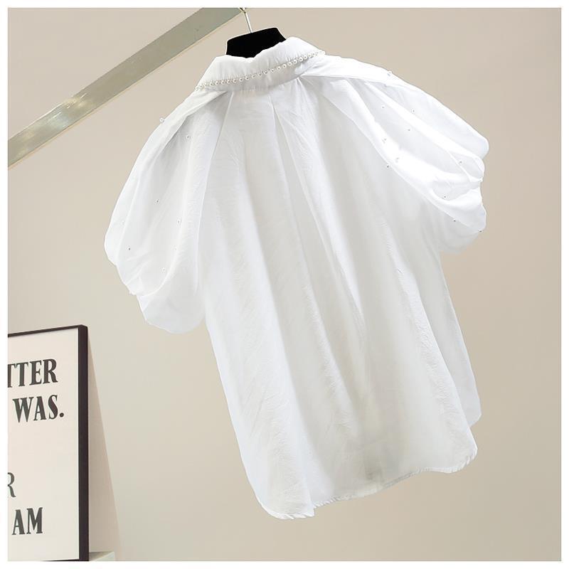 送料無料 ◆D1079 パール 襟付き ツヤ シアー パフスリーブ ドレスシャツ ブラウス《 ホワイト・ライトブルー 》カラーシャツ 襟付きブラウス ラインストーン 無地 水色 コバルトブルー パワースリーブ パワーショルダー バルーンスリーブ ランタンスリーブ ライム グリーン マゼンタ ターコイズブルー シルバー 半袖 インポート パーティードレス ビタミンカラー キャンディーカラー メール便 袖あり カジュアル トップス 前開き 《林ゆめさん・藤本万梨乃アナご着用》