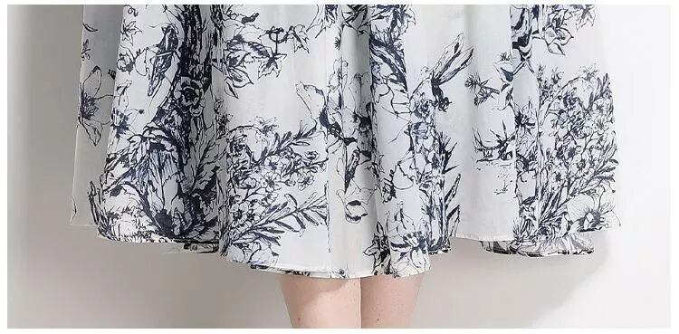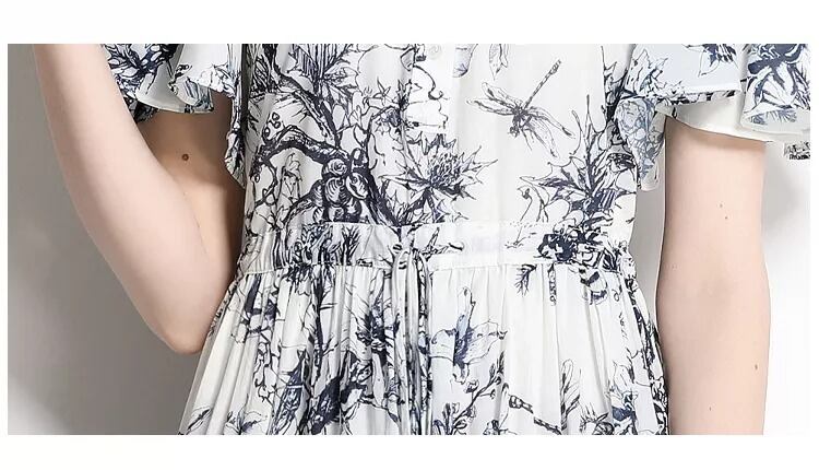 送料無料 ◆ D1204 ペチコート付き ケープスリーブ ボタニカル フレア ロング ワンピース 《 ホワイト×ネイビー 》 ケープ袖 半袖 ロング フラワー 膝丈 ミモレ 昆虫柄 膝下 アンクル丈 レース 柄ワンピース パールボタン クラシカル パーティードレス お呼ばれ 柄物ワンピース 柄ワンピ メール便 パーティーワンピ 袖付き お呼ばれワンピース ロング ひざ丈 袖あり おしゃれ 衣装 インポートワンピース お呼ばれ お出かけ エレガント 上品 カジュアル