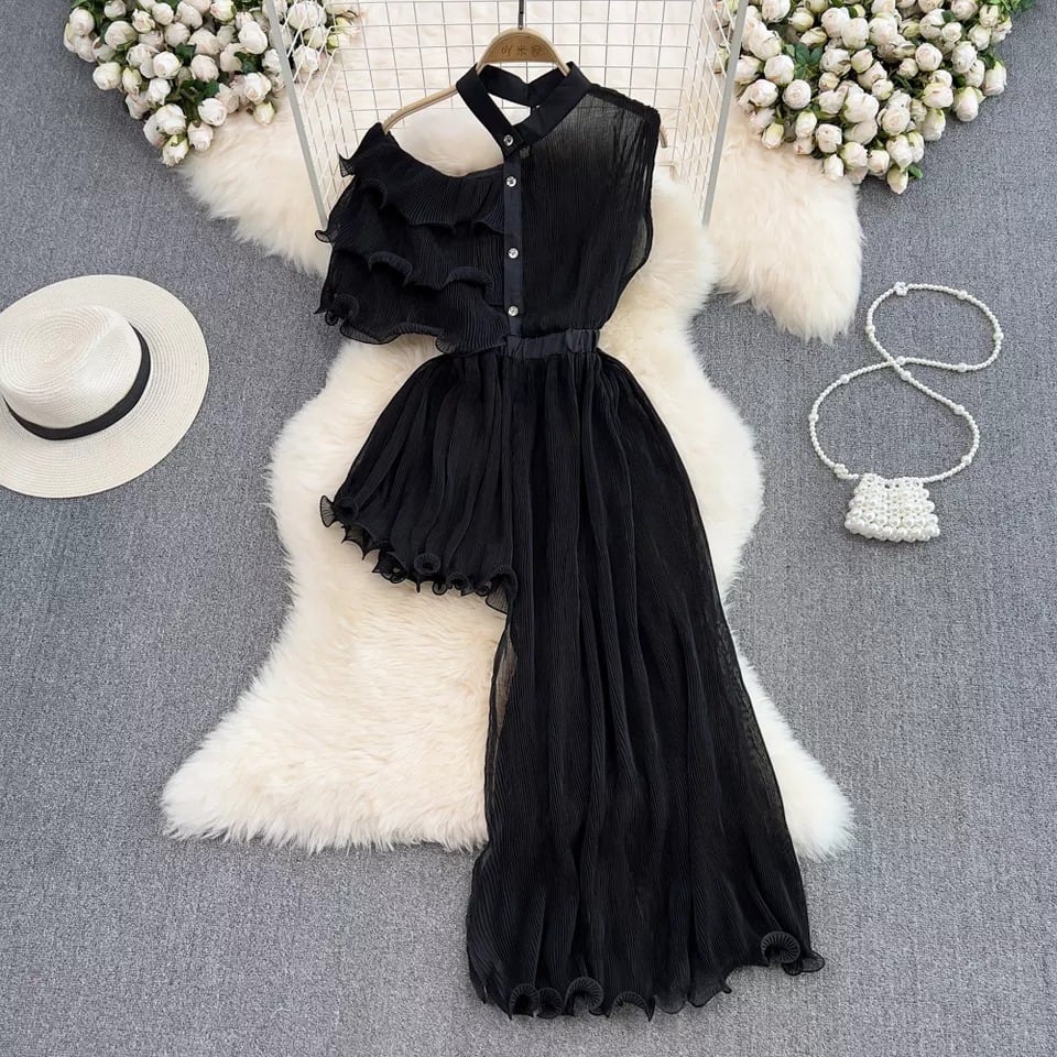 送料無料 ◆ D1237 アシンメトリー カットアウト プリーツ ラッフル フリル ロング シアー ドレスシャツ ブラウス 《ブラック・ホワイト・グリーン》アシメ カットアウト カットオフ ショルダーフリル ラッフルフリル 黒ブラウス 緑ブラウス ブラックブラウス モード ファッション グリーンブラウス シャツ フリルブラウス 無地 トップス フリル袖 インポート カジュアル メール便 カジュアル モード おしゃれ お出かけ お呼ばれ 衣装 アシメブラウス《唯月ふうかさんご着用》