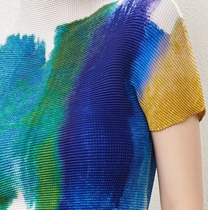 送料無料 ◆ D1239 ペイント柄 プリーツ ドレスシャツ ブラウス & プリーツ ロング スカート セットアップ《ホワイト×ブルーミックス 》2点セット 上下セット ツーピース 2ピース 半袖 青ワンピース 襟付き 青セットアップ ボトルネック トップス プリーツスカート クラシカル パーティードレス メール便 パーティーワンピ カジュアル 膝下 袖あり おしゃれ インポートワンピース お呼ばれ ミモレ ロング お出かけ 上品 衣装 爽やか オフィスカジュアル