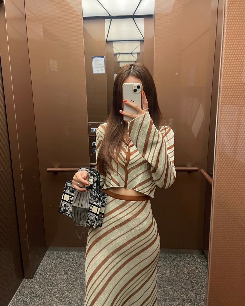 バイアスマルチボーダーのニットセットアップ