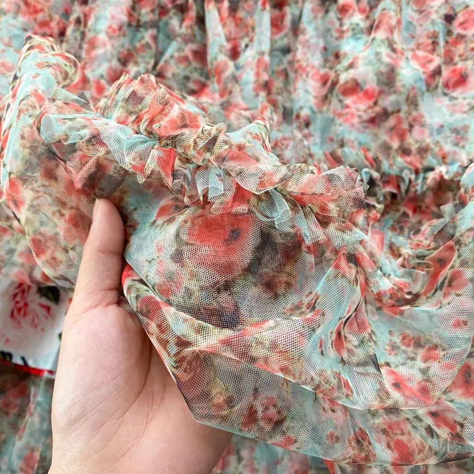ウエストから下は花柄チュール2枚+ローズ柄生地1枚の合計3枚重ね