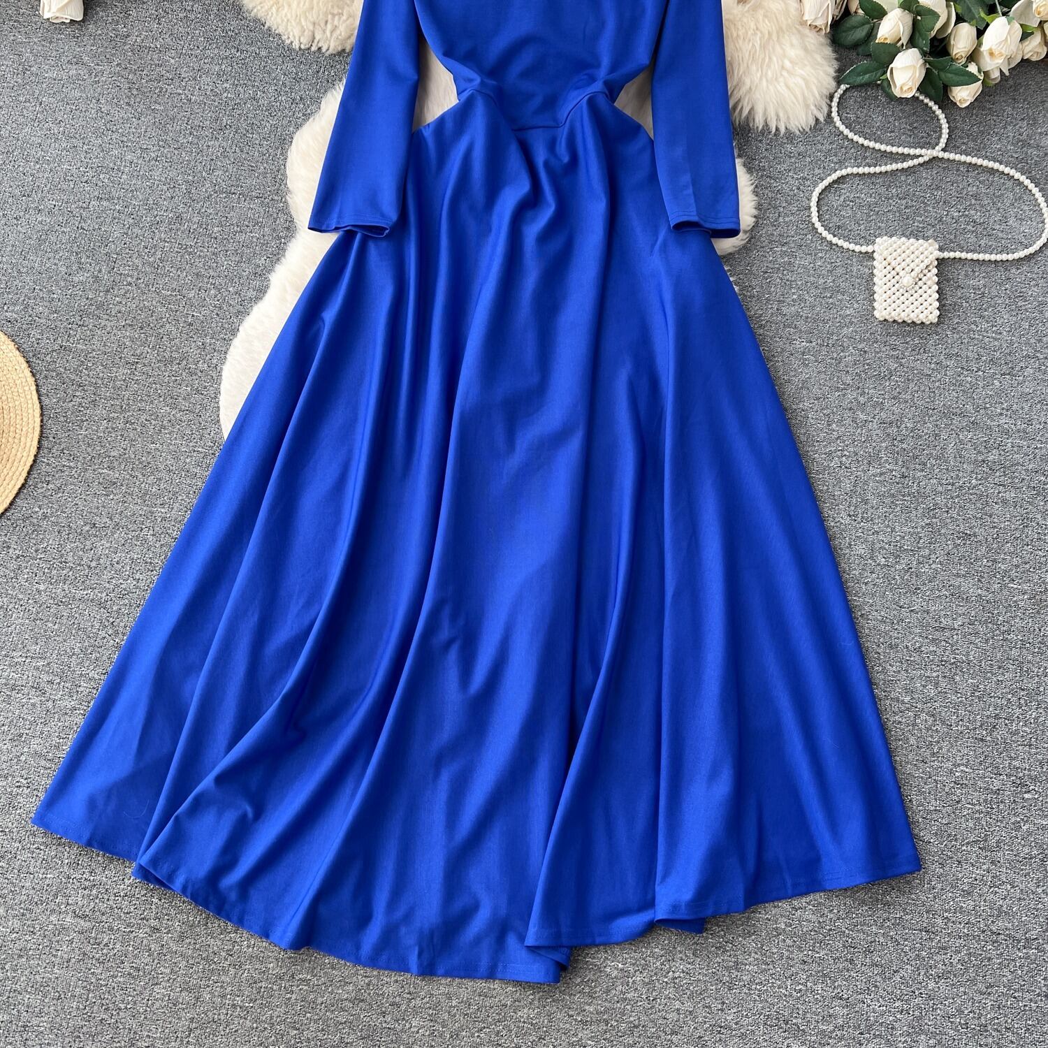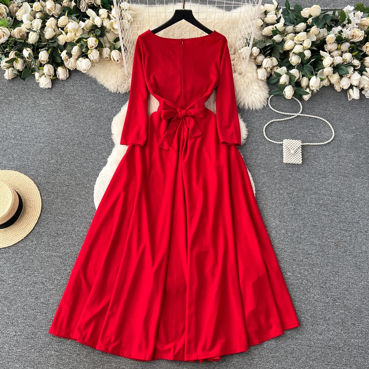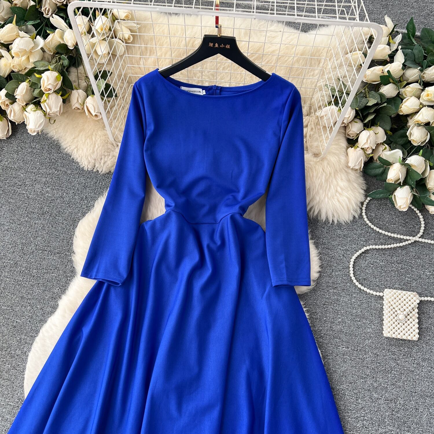 送料無料 ◆ D1677 バック ウエストリボン 長袖 クラシカル ロング ワンピース《 ブルー / レッド》 パーティードレス 無地 クラシカルワンピース クラシック 青 青ワンピース 赤 柄なし 上品 長袖 パフスリーブ バルーンスリーブ 袖あり 総レース ミモレ マキシ ロング 膝下丈 女子会 パーティー ドレス ストライプ 結婚式 お呼ばれ 衣装 上品 オフィスカジュアル シンプル 清楚 お出かけ お食事 同窓会 発表会 卒業パーティー 衣装 謝恩会 同窓会