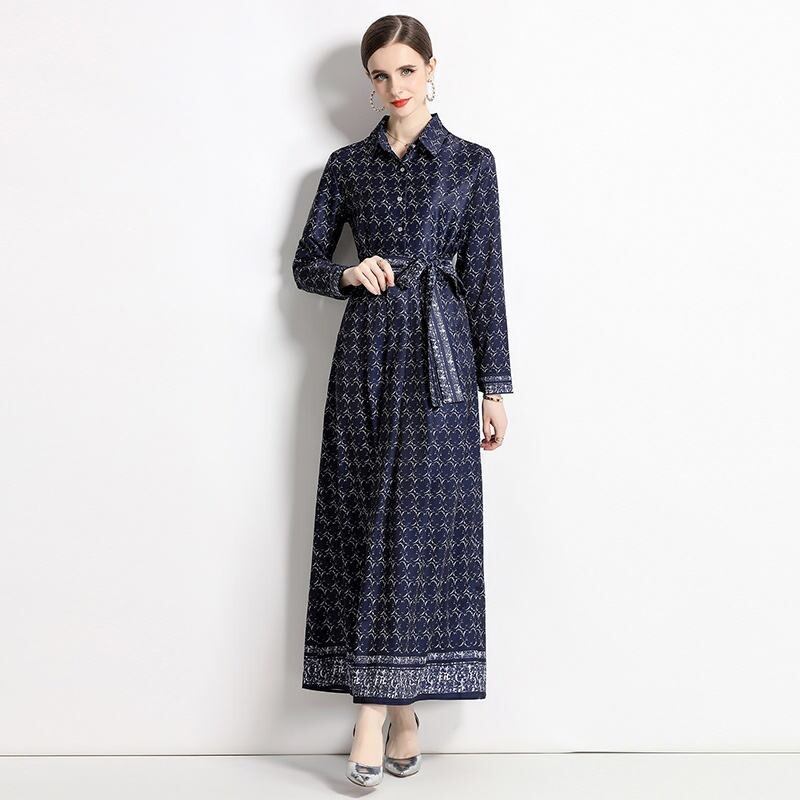 送料無料 ◆ D1693 リボン付き 襟付き 長袖 フロントボタン ロング ワンピース 《 ネイビー 》 ロング マキシワンピース フラワー シャツワンピース シャツワンピ ミモレ 昆虫柄 膝下 アンクル丈 柄ワンピース クラシカル パーティードレス お呼ばれ 柄物ワンピース 柄ワンピ メール便 パーティーワンピ 袖付き お呼ばれワンピース ロング 衣装 インポートワンピース お呼ばれ お出かけ 同窓会 謝恩会 発表会