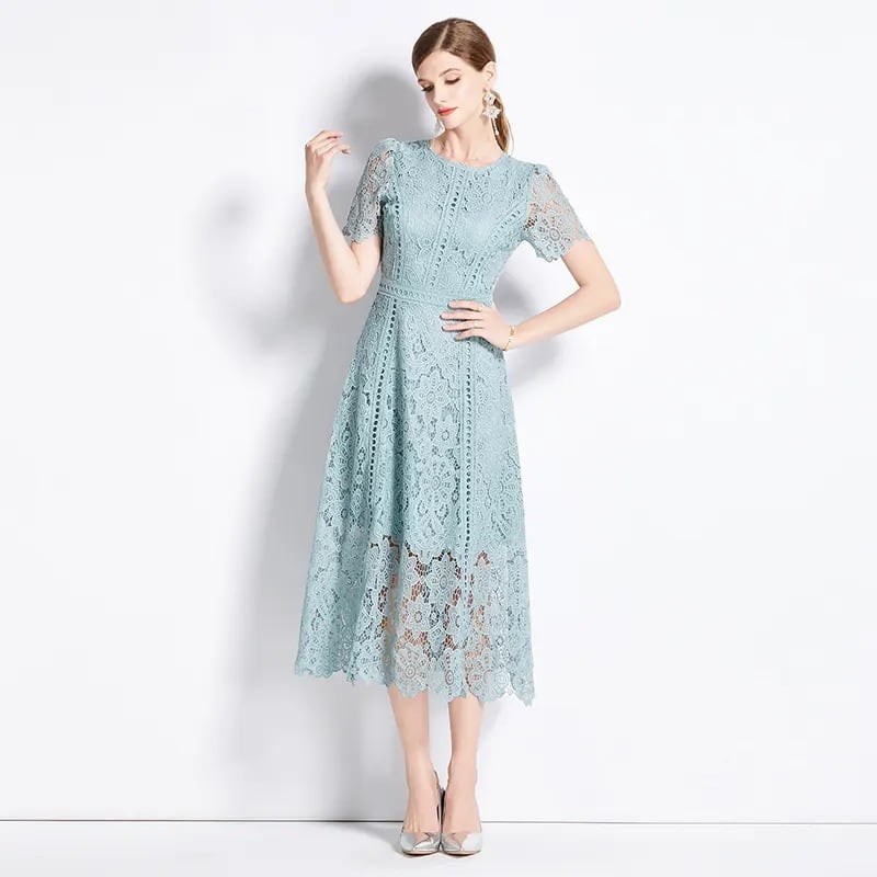 送料無料 ◆ D1724 クラシカル クロッシェ レース ハーフスリーブ ロング ワンピース《スモーキーアクア 》 アクアブルー 水色 グレー ライトブルーレース くすみブルー 総レース レースワンピース 膝丈 半袖 ミモレ丈 レース襟 ハーフスリーブ インポート パーティードレス お出かけ メール便 パーティーワンピ 2次会 ウエディング お呼ばれ お呼ばれドレス お食事 ひざ丈 膝下 おしゃれ インポートワンピース 衣装 卒業パーティー 謝恩会 同窓会 おでかけ 上品 無地