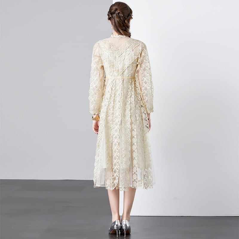 送料無料 ◆ D1734 ペチコート付き 刺繍 ゴールド リボン レース ウエストベロア ロング ワンピース《オフホワイト×ゴールド》ゴールド リボン刺繍 クラシカル ライトベージュ アイボリー ワンピース インポート 白 パーティードレス ホワイトワンピース メール便 パーティー お食事 ひざ丈 おしゃれ 袖あり インポートワンピース ロング フレア パーティードレス 膝下 膝丈 ミモレ 衣装 襟付き レースワンピース 切替 ワンピ 同窓会 謝恩会 発表会 ゴールドワンピース 上品