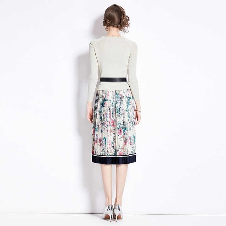 送料無料 ◆ D1736 ベルト付き ニット × クラシカルフラワー 異素材ミックス 切替 ロング ワンピース《オフホワイト》2点セット ベルトセット スカーフセット ドッキングワンピース 異素材 ミックス 切替 コンビ素材 ニットワンピース ニットワンピース 長袖 グリーンニットワンピース インポート パーティードレス カジュアル 上品 パーティーワンピ お呼ばれワンピース お食事 ひざ丈 おしゃれ 袖あり ロングワンピース 長袖 膝下 秋冬 インポートワンピース