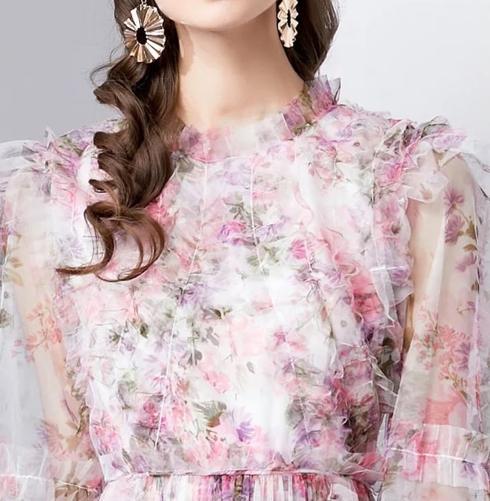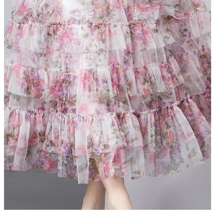 送料無料 ◆ D1777 フラワー ラッフルフリル バルーンスリーブ フレア ロング ワンピース《ピンク×ラベンダー》インポート パーティードレス パープル ピンク ラベンダー ピンク ワンピース メール便 パーティーワンピ ペチコート お食事 おしゃれ 袖あり インポートワンピース パーティードレス 膝下 膝丈 ロングワンピース 衣装 エレガント 衣装 華やか 発表会 お呼ばれドレス ドレス