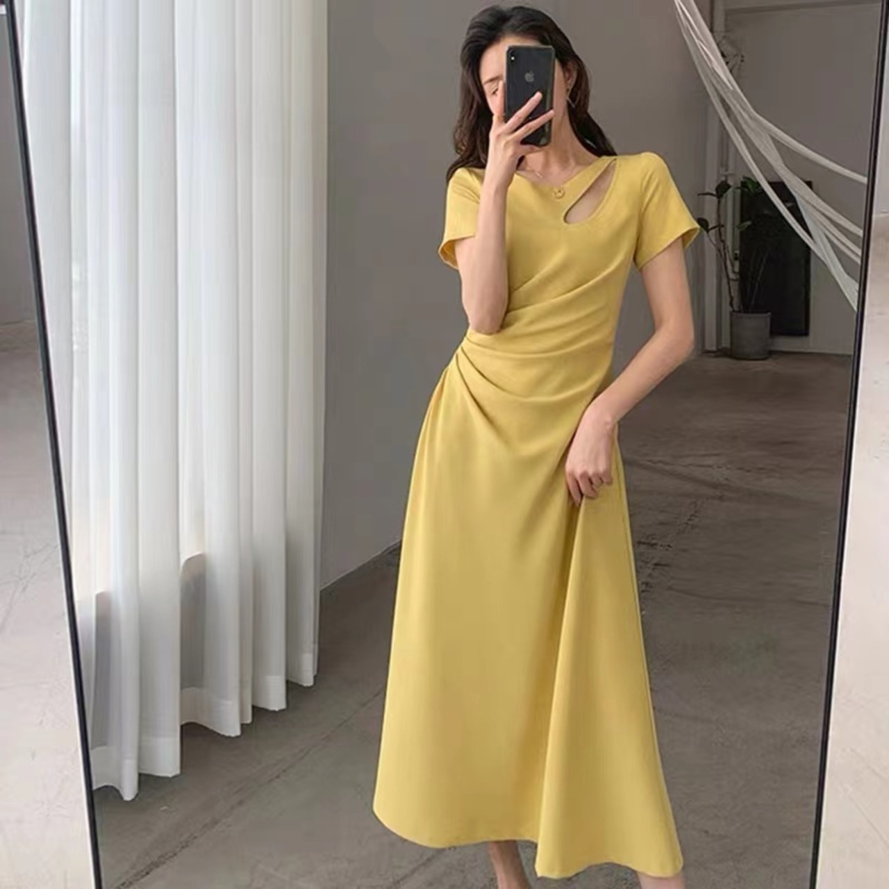 アシンメトリーのカットアウトワンピース