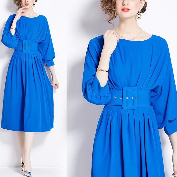 送料無料 ◆ D 1796 ワイドベルト付き ドルマンスリーブ タックプリーツ ロング ワンピース《 ブルー 》無地 青ワンピ 青ワンピース クラシカル 長袖 袖あり ワンピース インポート パーティードレス ボートネック メール便 パーティーワンピ お呼ばれワンピース お食事 膝下 おしゃれ 袖あり インポートワンピース パーティードレス ロングワンピース 衣装 ミモレ ベルトセット ベルト付き 2点セット ベルト カジュアルワンピース オフィスカジュアル 衣装 同窓会 謝恩会 発表会