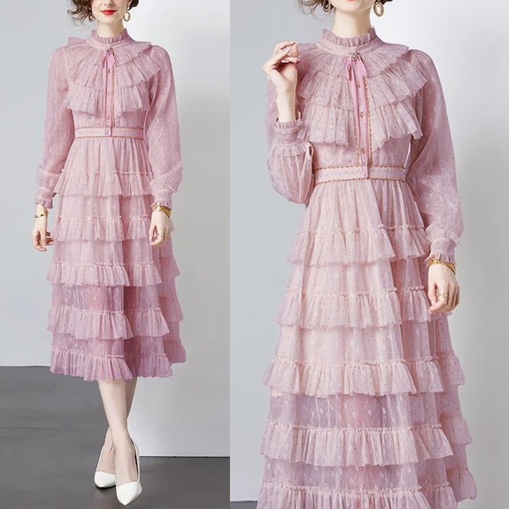 送料無料 ◆ D1844-2 キャメルリボン ゴールド ドット ビーズ ティアード レース ロング ワンピース《 ピンク×ゴールド 》ピンクワンピース ゴールドドット レース フレア 無地 ワンピース レース 膝丈 ロング ブラワーレース インポートワンピース お呼ばれ 結婚式 パーティードレス メール便 パーティーワンピ 袖付き お呼ばれワンピース セミフォーマル ひざ丈 長袖 裏地付き 透けない インポートワンピース お呼ばれ 上品 結婚式 卒業パーティー 謝恩会 同窓会 発表会 クリスマス