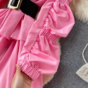 送料無料 ◆ D1858 ワイドベルト付き マリースリーブ ティアード ロング ワンピース 《ホワイト/ピンク》ベルトセット 2点セット 長袖 シャツワンピース バルーンスリーブ シャーリングスリーブ ギャザースリーブ パワショル 太ベルト 衣装 80s 韓国 カジュアルコーデ おしゃれ ファッション モード モード系 緑ワンピース 白ワンピ