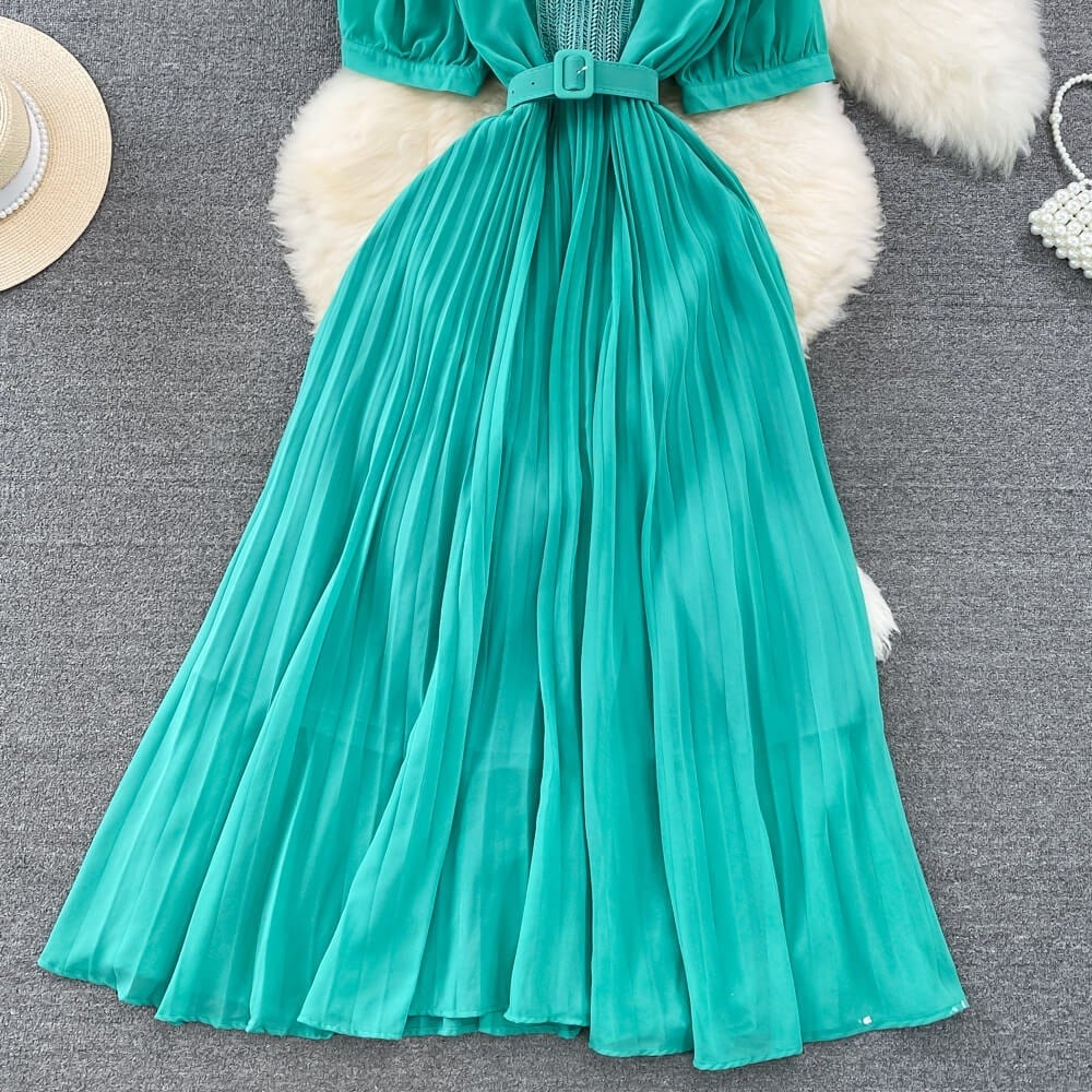 送料無料 ◆ D1924 ベルト付き スタンドネック レース 半袖 シフォン ロング ワンピース《エメラルドグリーン》 グリーン エメラルド パーティードレス フレア 上品 長袖 袖あり 鮮やかコーデ ミモレ 無地 マキシ ロング 膝下丈 女子会 パーティー ドレス シフォン ロングスリーブ フレアスカート 結婚式 上品 カジュアル お出かけ お呼ばれ 衣装 謝恩会 発表会 無地 爽やか 結婚式 2次会