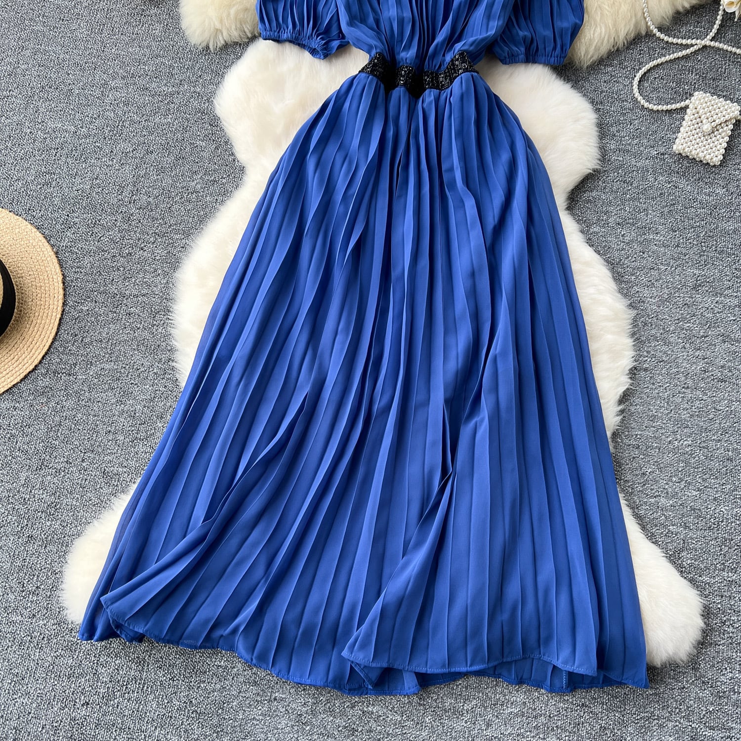 SALE セール 送料無料 ◆ D1959 ブラック スパンコール ビーズ ウエスト 切替 パフスリーブ プリーツ ロング ワンピース《 ネイビー×ブラック 》ブルー 青ドレス ブルードレス バイカラー フレア 無地 ワンピース 膝丈 ロング インポートワンピース お呼ばれ 結婚式 パーティードレス メール便 パーティーワンピ 袖付き お呼ばれワンピース セミフォーマル ひざ丈 長袖 裏地付き インポートワンピース お呼ばれ 上品 結婚式 清楚 衣装 お呼ばれドレス 同窓会 発表会