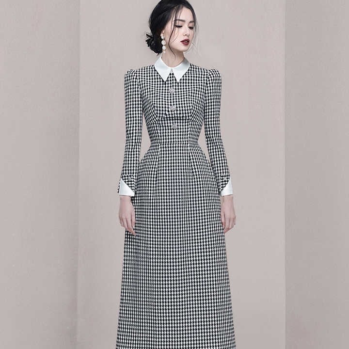 《訳ありアウトレット》送料無料 ◆ D1731 白襟 千鳥格子 長袖 ロング ワンピース《ホワイト×ブラック》クラシカル チェック リボン ボウタイ ブラック 黒 白 モノトーン ロングワンピース エレガント ロングワンピ クラシック ヴィンテージ ロング インポートワンピース お呼ばれ パーティードレス メール便 パーティーワンピ 袖付き お呼ばれワンピース マキシ 長袖 インポートワンピース お呼ばれ 上品 パーティー 衣装 柄物 柄ワンピース アウトレット B品 訳あり 訳あり品 セール品