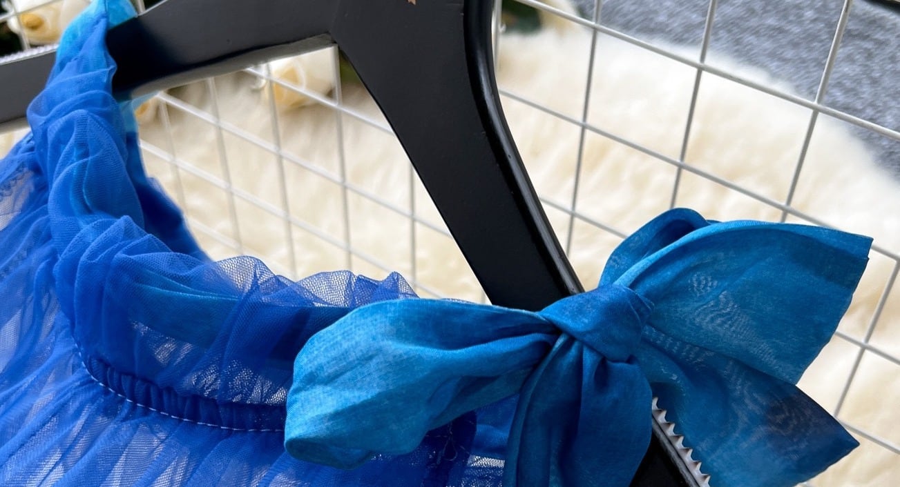 鮮やかなブルーのレイヤードワンピース