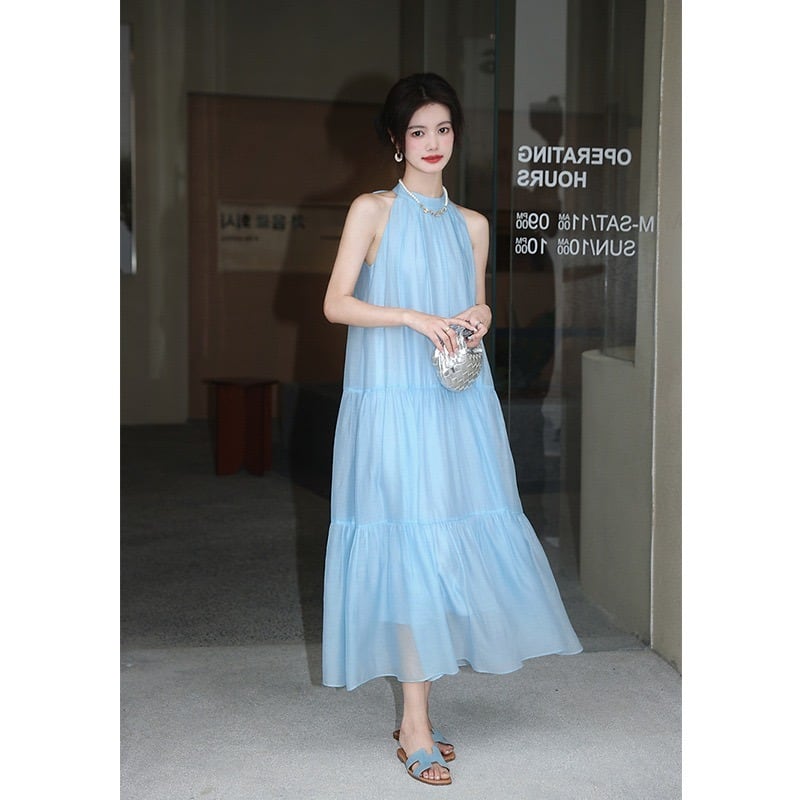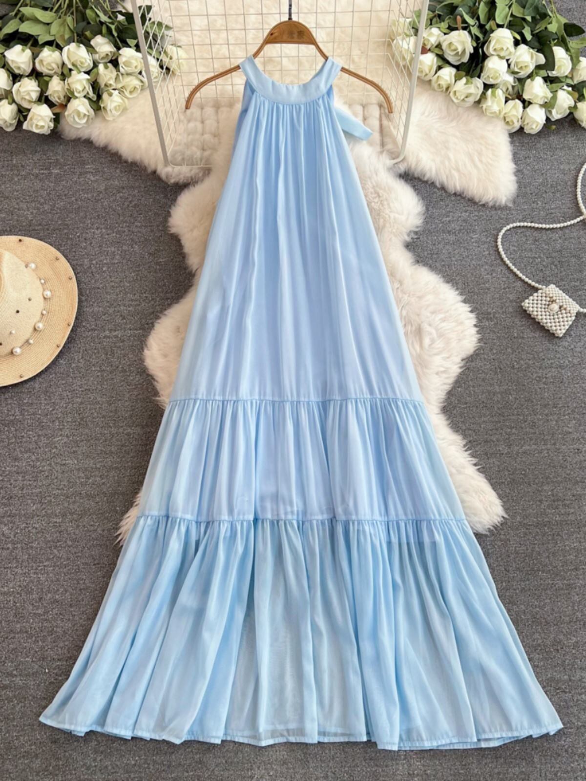送料無料 ◆ D1995 バックリボン ホルターネック ロング ワンピース《ライトブルー》ノースリーブワンピース 青ワンピース 無地 ブルー クラシカル パーティードレス メール便 マキシワンピース パーティーワンピ お食事 透けない マキシ ロングワンピ ピンク ライトブルーワンピース インポートワンピース お呼ばれ サンドレス サマードレス 衣装 カジュアル バケーション バカンス リゾート 旅行 おでかけ
