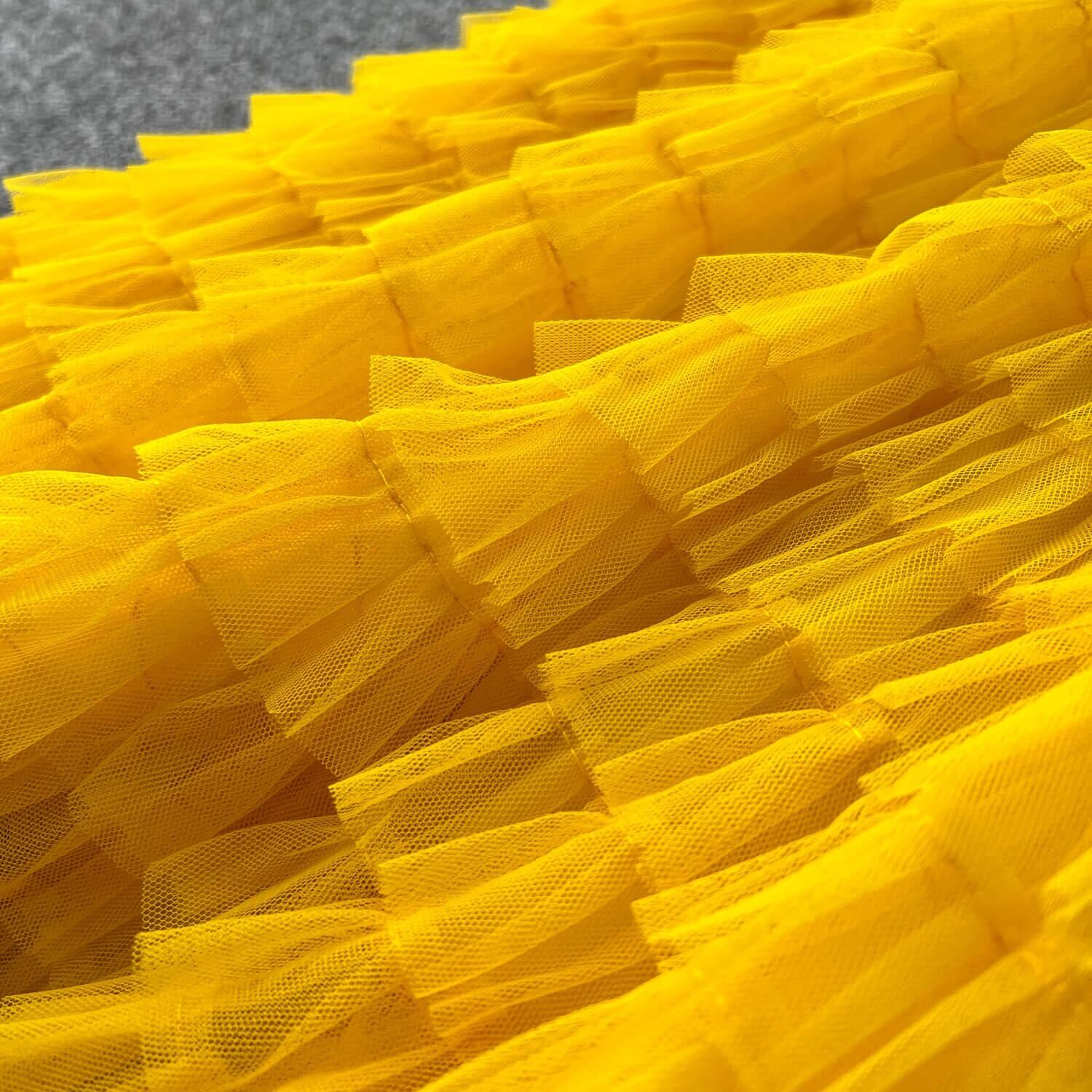 《訳ありアウトレット》送料無料 ◆ D1998 ティアード チュール Vネック ノースリーブ ロング ドレス ワンピース 《 イエロー 》黄色 無地 裏地付き 膝丈 膝下 ミモレ ミディ パーティードレス メール便