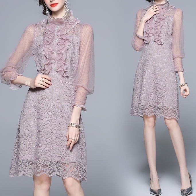 送料無料 ◆ D2001 ラメ ドット フリル レース ロングカフス バルーンスリーブ スタンドネック ミディ ワンピース《 ラベンダー 》 ゴールド シルバー パープル 紫 クラシカル ドレス 袖あり 長袖 柄物 無地 インポートワンピース 紫ワンピ パーティードレス メール便 パーティーワンピ 袖付き お呼ばれワンピース 結婚式 お呼ばれ パーティー ひざ丈 長袖 おしゃれ インポートワンピース 衣装 ドール ロングワンピース 華やか クラシック レースワンピ 卒業パーティー 謝恩会 同窓会