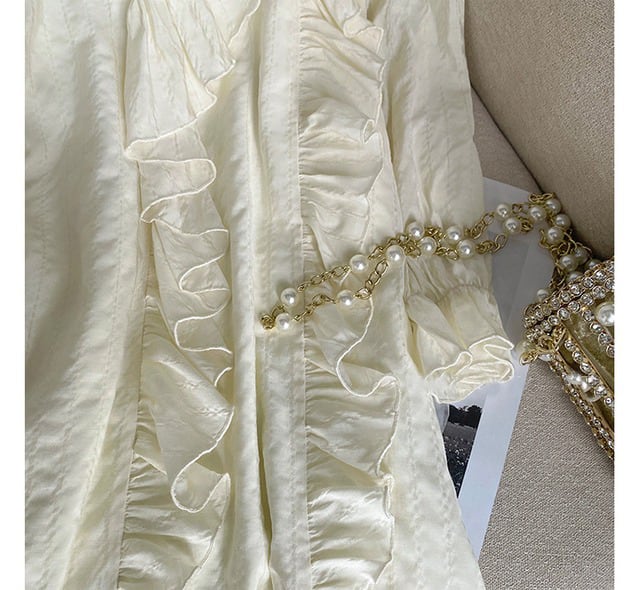 《訳ありアウトレット》送料無料 ◆ D745 ラッフル フリル Vネック キャンディースリーブ ワンピース《 オフホワイト 》白ワンピース 白 長袖ワンピース アイボリーワンピース クラシカル 長袖 レースワンピース ふわふわ インポート パーティードレス ホワイトワンピース 白ドレス メール便 お呼ばれワンピース お食事 おしゃれ カジュアル 袖あり インポートワンピース ロング フレア パーティードレス 膝下 ロングワンピース 透けない アウトレット B品 訳あり 訳あり品 セール品