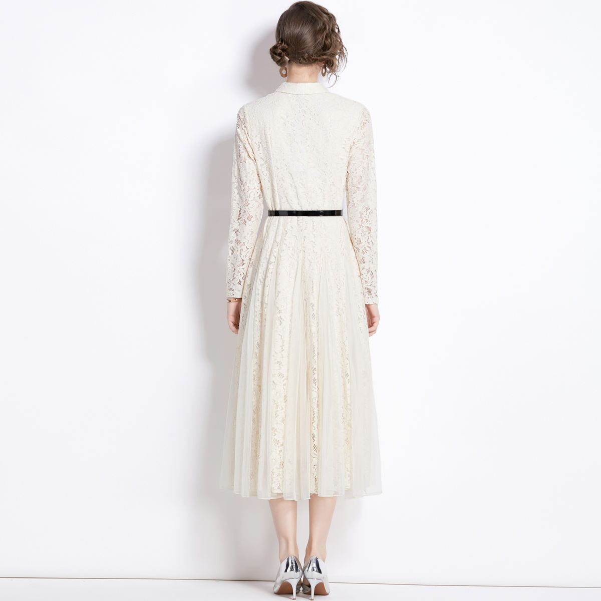 送料無料 ◆ D2061 ブラックベルト付き 襟付き レース 長袖 ロング ワンピース《 ホワイト 》総レース レース ホワイト オフホワイト 切り替え チュールワンピース 無地 クラシカル パーティードレス お呼ばれ 結婚式 メール便 パーティーワンピ 袖付き お呼ばれワンピース セミフォーマル ひざ丈 袖あり おしゃれ 柄なし インポートワンピース お呼ばれ お出かけ 上品 結婚式 卒業パーティー 同窓会 成人式