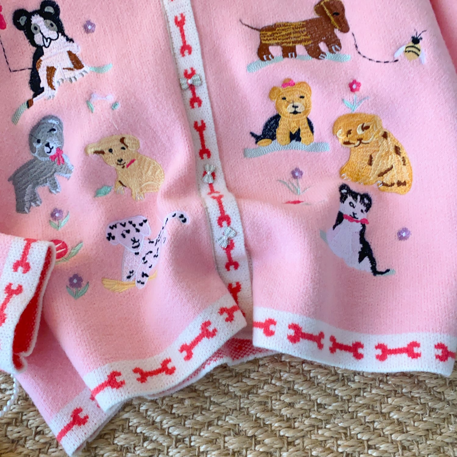 送料無料 ◆ D2080 犬 刺繍 ビジュー リボンボタン 長袖 ニット オーバーサイズ カーディガン セーター トップス 《グレー / ピンク》dog 犬セーター ドックセーター パステルカラー 刺繍ニット チャウチャウ ダルメシアン シーズー バセットハウンド ミニチュアダックス ペキニーズ プレゼント ギフト 柄セーター 長袖 袖あり 無地 カジュアル ドックトップス 犬柄 衣装 インポート カジュアル メール便 かわいい モード おしゃれ キャンディーカラー
