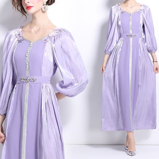 クラシカルなパープルドレスワンピース
