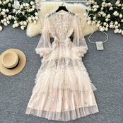 総刺繍のティアードレースワンピース