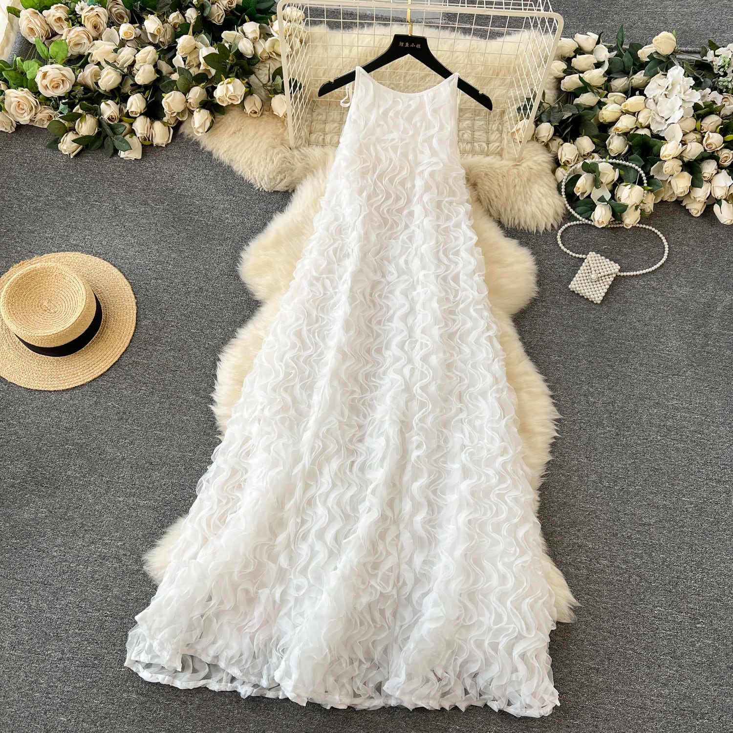 《訳ありアウトレット》送料無料 ◆ D1910 立体 ラッフルフリル ショルダーリボン カットアウト ロング キャミ ワンピース 《 ホワイト》 ロング マキシワンピース フラワー ドレス ホワイトドレス 清楚 白 ミモレ 膝下 アンクル丈 クラシカル パーティードレス お呼ばれ 柄物ワンピース 柄ワンピ パーティーワンピ お呼ばれワンピース ロング 衣装 インポートワンピース お呼ばれ お出かけ 同窓会 謝恩会 発表会 アウトレット B品 訳あり 訳あり品 セール品