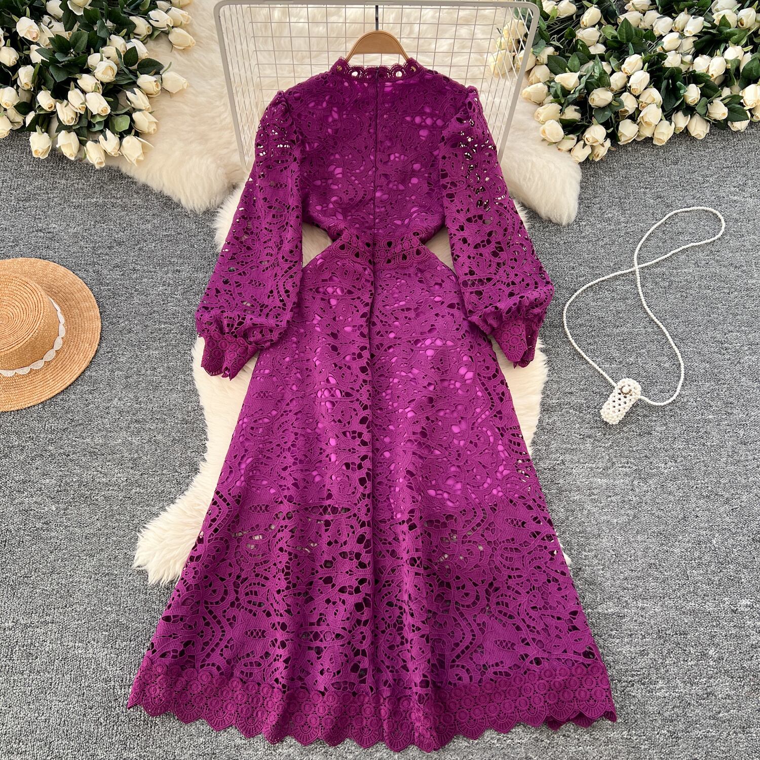 送料無料 ◆ D2123 クロッシェレース ロングカフス バルーンスリーブ ロング ドレス ワンピース《 パープル 》紫 ワンピース レース フレア 無地 ワンピース レース 膝丈 ロング インポートワンピース お呼ばれ 結婚式 パーティードレス メール便 パーティーワンピ 袖付き お呼ばれワンピース セミフォーマル ひざ丈 長袖 裏地付き 透けない インポートワンピース お呼ばれ ウェディング 上品 結婚式 卒業パーティー 謝恩会 同窓会 発表会