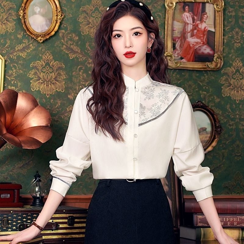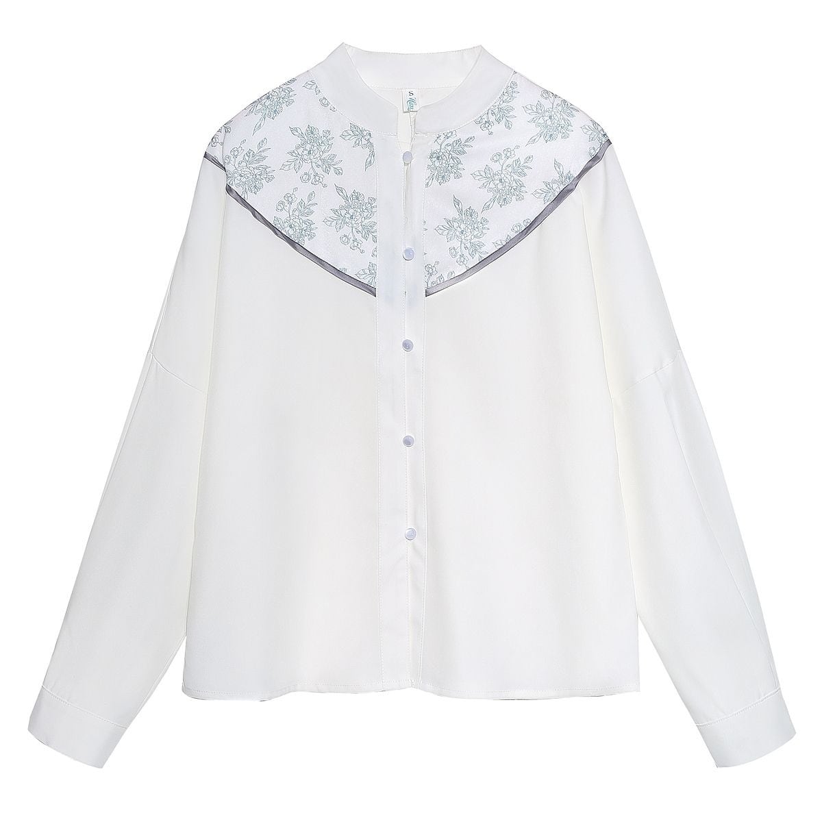 送料無料 ◆ D2149 ボタニカル ヨーク切替 グレーパイピング クリアボタン 長袖 前開き ドレスシャツ ブラウス《 ホワイト 》襟付き 白ブラウス 白 立体ブラウス シャツ 襟あり シャツ モチーフ付きブラウス 長袖 袖あり 無地 パワースリーブ ラッフル シャツ トップス 前開き 前ボタン フリル袖 インポート パーティードレス カジュアル メール便 カジュアル モード おしゃれ お出かけ お呼ばれ 衣装 シアーブラウス シアーシャツ クリスマス
