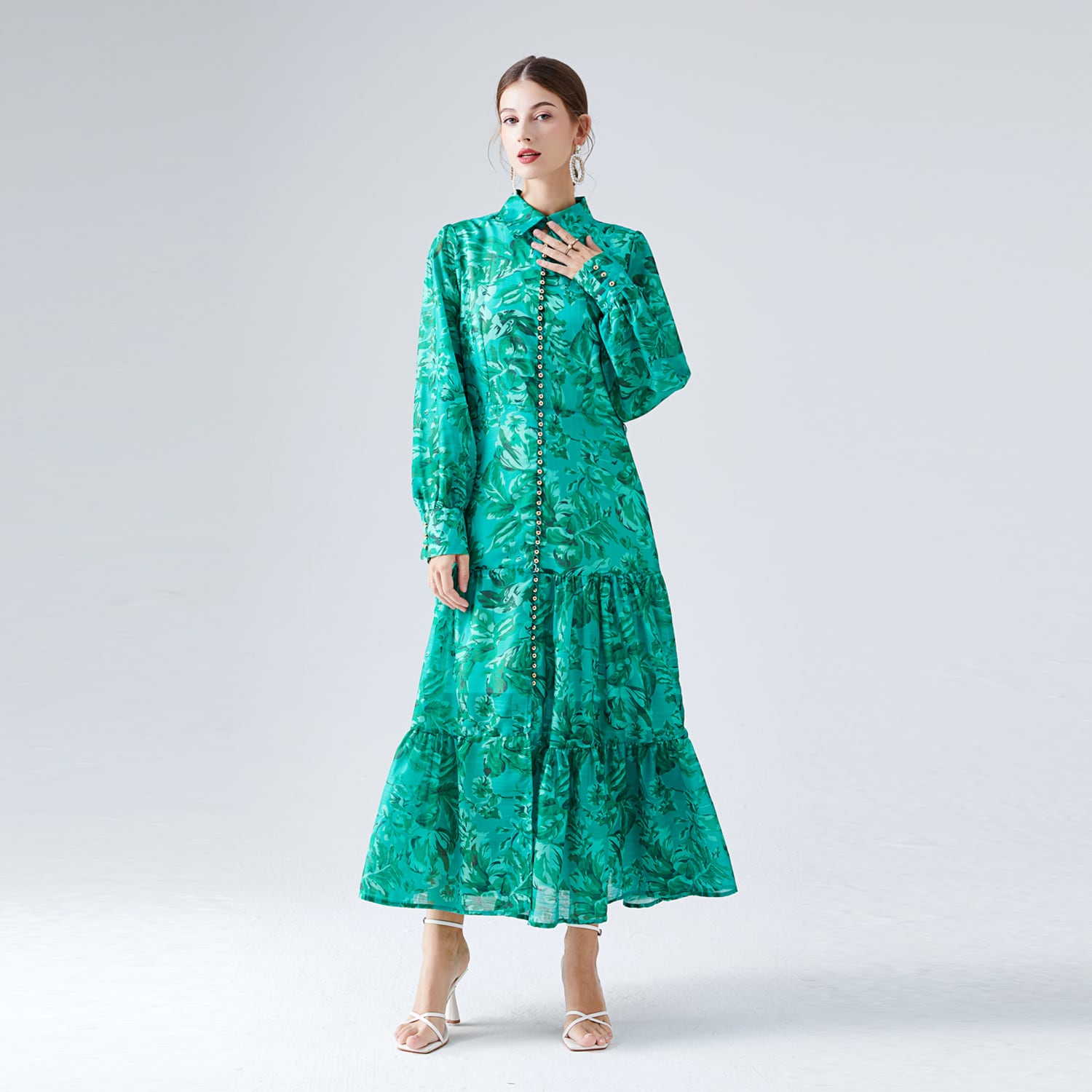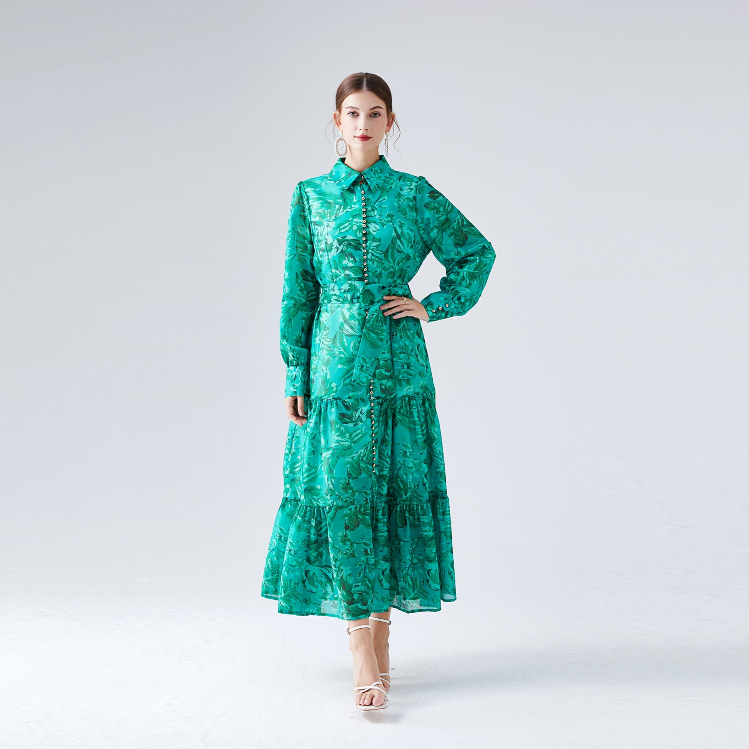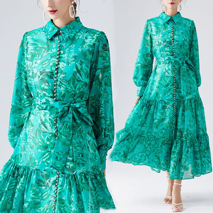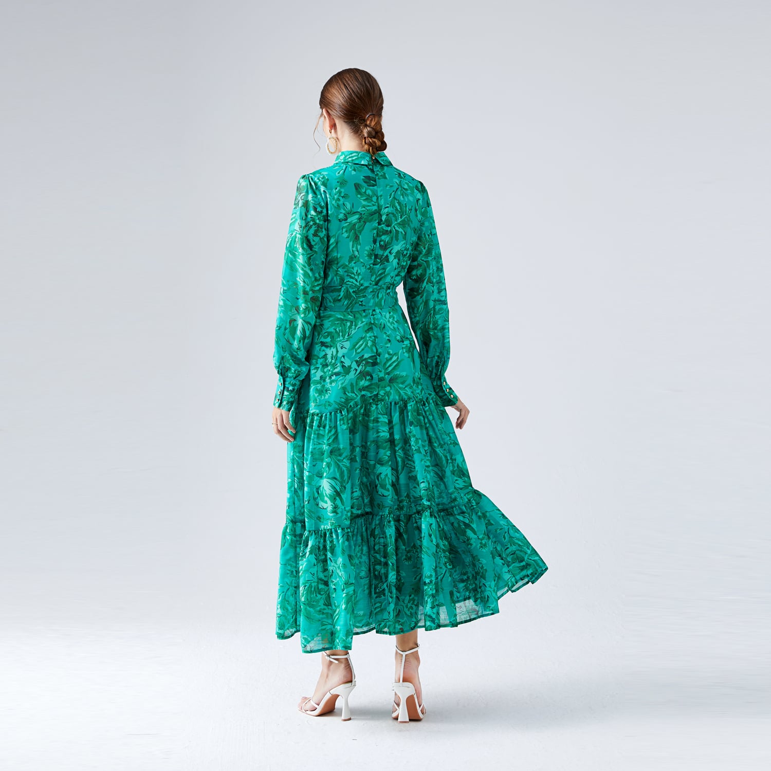送料無料 ◆ D2165 リボン付き ゴールドボタン 長袖 ロングカフス ボタニカル ロング ワンピース《 グリーン 》 クラシカル 袖あり 同窓会 謝恩会 ワンピース インポート パーティードレス 緑ワンピ 緑ワンピース メール便 パーティーワンピ おでかけ お食事 膝下 おしゃれ 袖あり インポートワンピース パーティードレス ロングワンピース 衣装 2点セット レースワンピ オケージョン