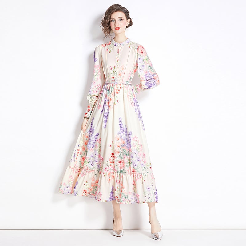 送料無料 ◆ D2186 胡桃ボタン ペールフラワー 花柄 長袖 ロングカフス ロング ワンピース《 ピンク 》 パウダーピンク ラベンダー 花柄 ソルベカラー パステルカラー ペールトーン 薄いピンク ロングスリーブ ワンピース マキシ丈 お出かけ 清楚 上品 インポートワンピース パーティードレス 衣装 柄ワンピース 柄物 パーティー 華やか エレガント メール便 マキシ エレガント 上品 清楚 衣装 英字 文字 襟付きワンピ シャツワンピ